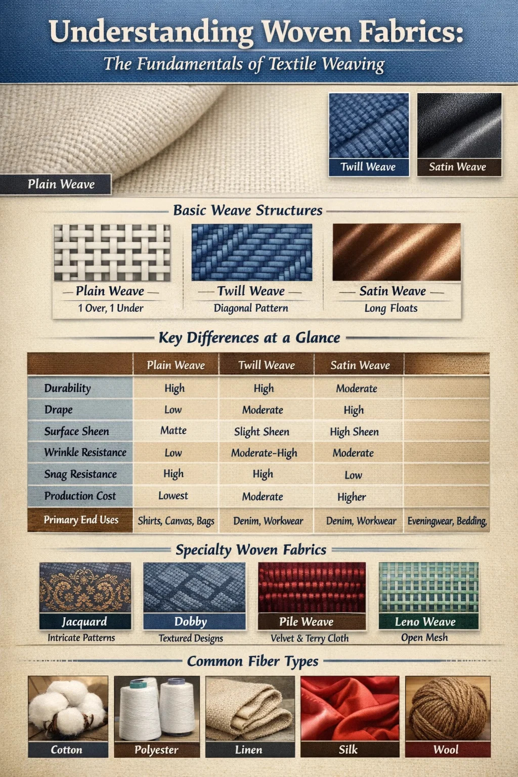 Um zu verstehen, warum Leinwandbindungen den Markt dominieren, muss man sich die gesamte Palette gewebter Stoffe genauer ansehen – wie sie hergestellt werden, was sie voneinander unterscheidet und worin sich jeder Typ wirklich auszeichnet. Unabhängig davon, ob Sie Textilien für eine Bekleidungslinie, ein Polsterprojekt oder eine industrielle Anwendung beschaffen, macht die Kenntnis der gängigen Webarten und ihrer tatsächlichen Leistungsunterschiede einen praktischen Unterschied bei Ihren Entscheidungen.